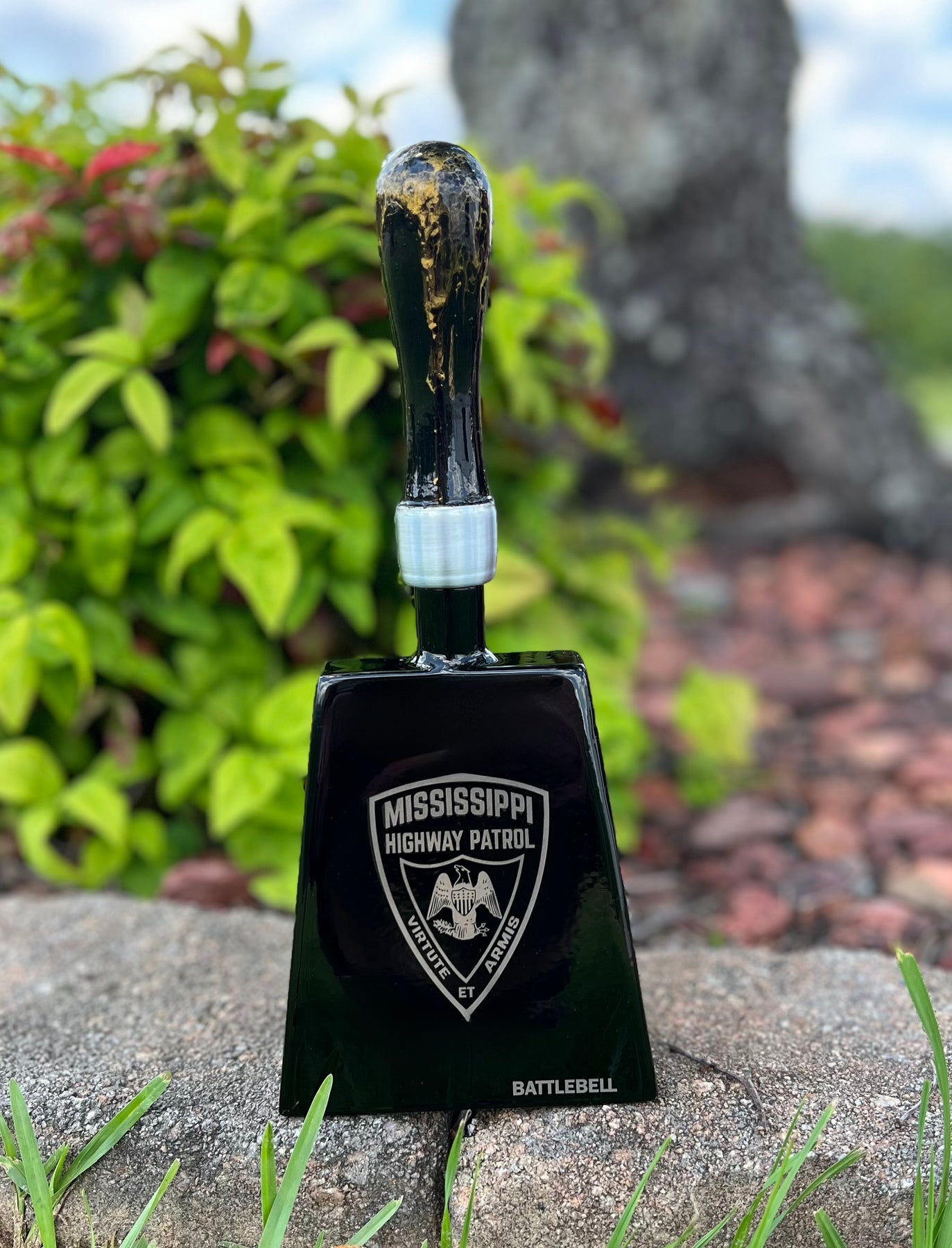 The Original BattleBell is the toughest BattleBell ever produced. Its 3 piece TIG welded body consists of heavy duty 16 gauge stainless steel plates designed to increase durability. The American made interchangeable wooden handle mounts atop the BattleBell's precisely machined stainless steel coupling for maximum strength and ease of customization. The Original BattleBell is proudly handcrafted in Mississippi and made by BattleBells. All of these BattleBells can be custom engraved, just add custom engraving and what you want on your BattleBell!